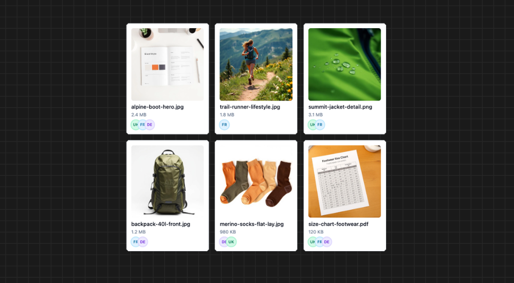 Upload, organize, and assign product images across your catalog from a single media library.